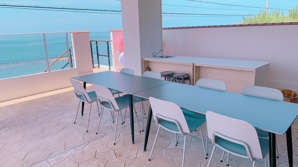 ※冬季期間(11月〜2月末までは強風の日がある為テラスのテーブルはご利用出来ません)